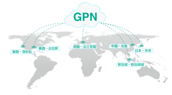 GPN全球互联示意图,内网连接中国,美国,日本,新加坡,德国